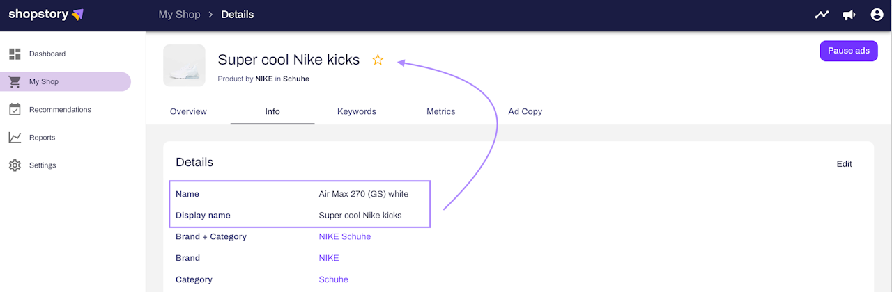 Ab sofort kannst du den Namen für Shopelemente ändern. Auf diese Weise können wir sicherstellen, dass du mehr relevante Keywords für deine Anzeigen vorgeschlagen bekommst.