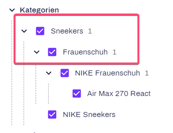 "Sneekers > Frauenschuh" würde zwei Kategorien ergeben, wobei die Kategorie "Frauenschuh" hier unter der Kategorie "Sneekers" zugeordnet wäre