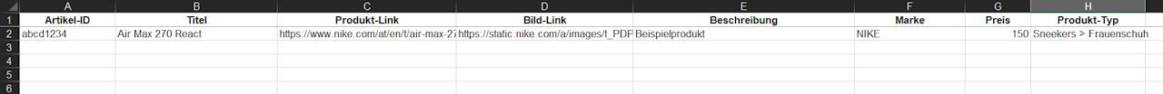 Wenn du dieses öffnest, siehst du direkt die vorbenannten Spalten mit einem Beispiel