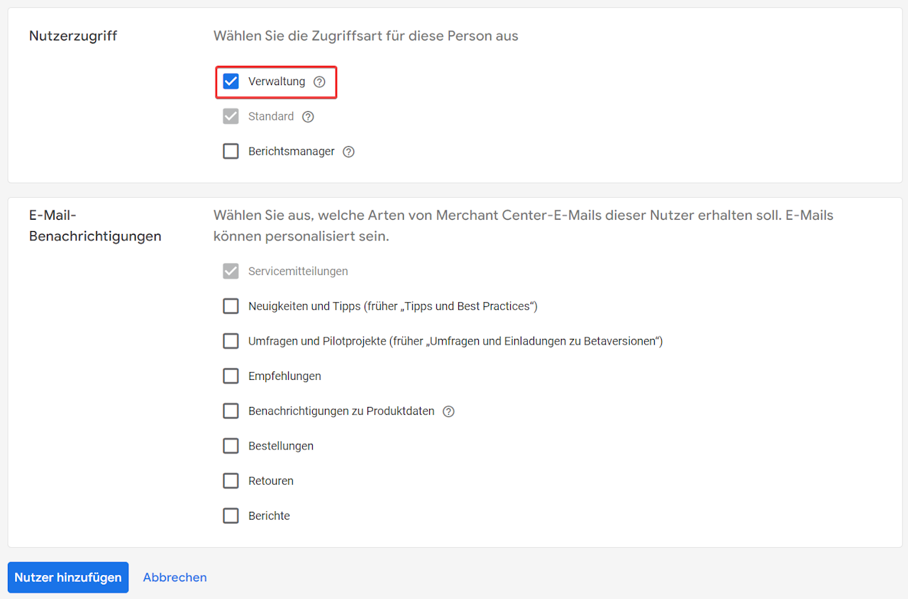 Wie füge ich einen Nutzer im Merchant Center hinzu?