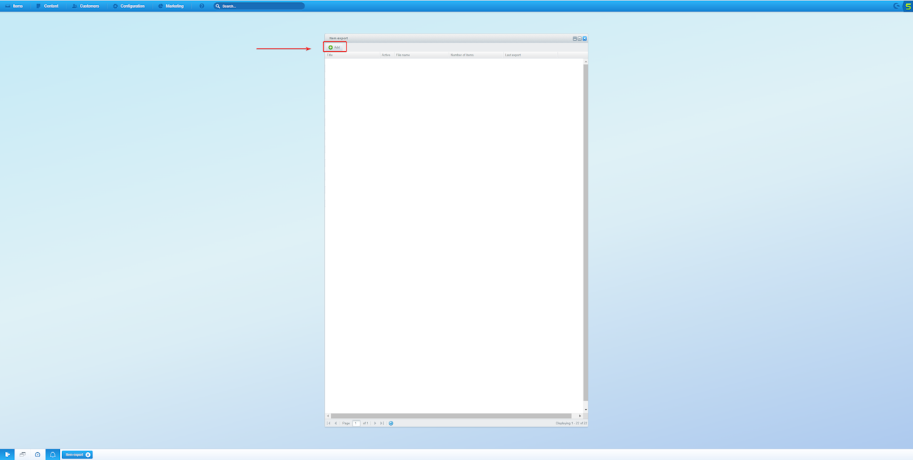 Log in to your store backend and select "Marketing" in the menu and then the "item export" section.