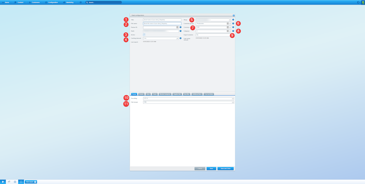 Points 10 and 11: With UTF-8 and XML you are definitely on the safe side. Even if there are different options that work with Shopstory, we would recommend these settings.